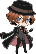 Executive member of the Port Mafia. Despises Dazai Osamu of the Armed Detective Agency. His small frame is more than made up for by brutish strength and swift movement. Rarely seen without his black hat.