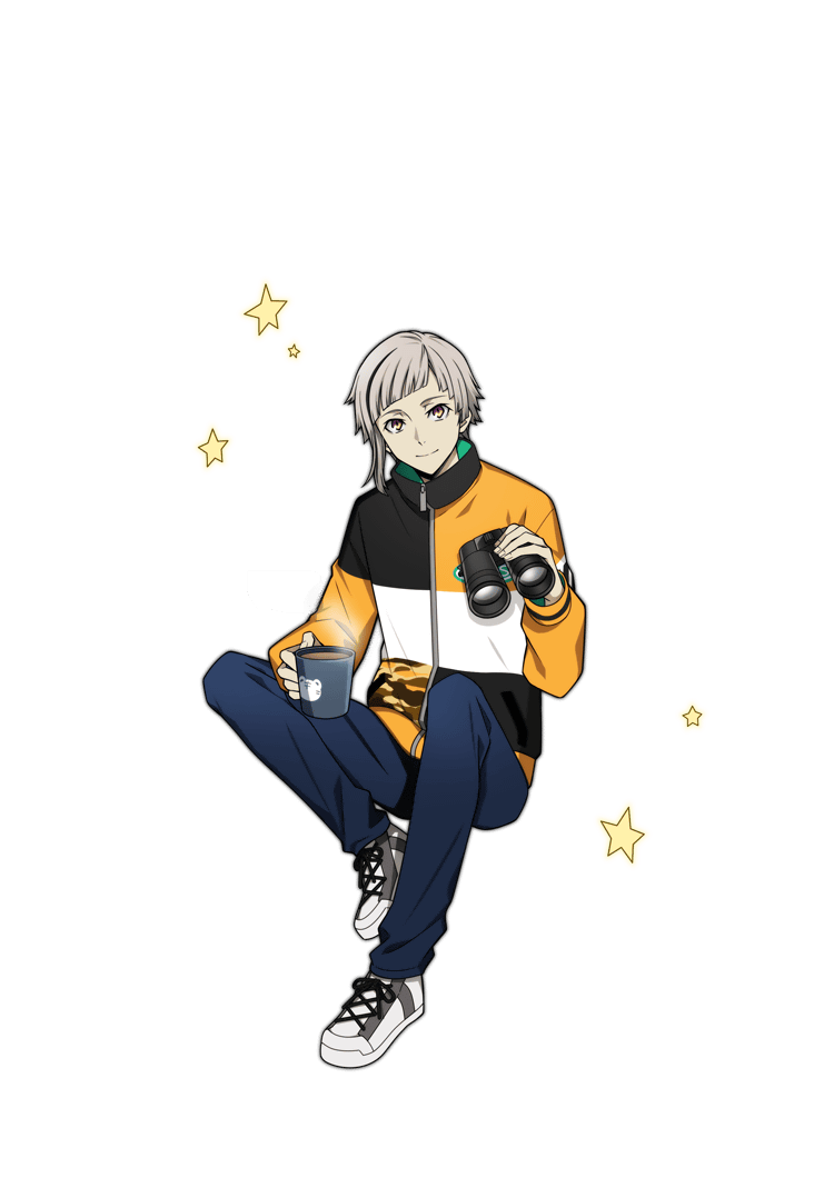 Nakajima Atsushi going stargazing. His eyes sparkled at the thought of a starry sky, and he now stares intently as shooting stars cross the night sky.